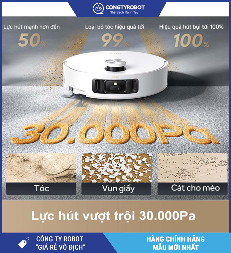 Lực hút là yếu tố quyết định “hút có sạch không”, nhất là với bụi mịn, cát nhỏ, vụn snack, lông thú và khu vực có khe rãnh. Vormax™ với lực hút tối đa 30.000Pa giúp robot xử lý tốt hơn các tình huống bụi bẩn khó chịu trong sinh hoạt hàng ngày.
