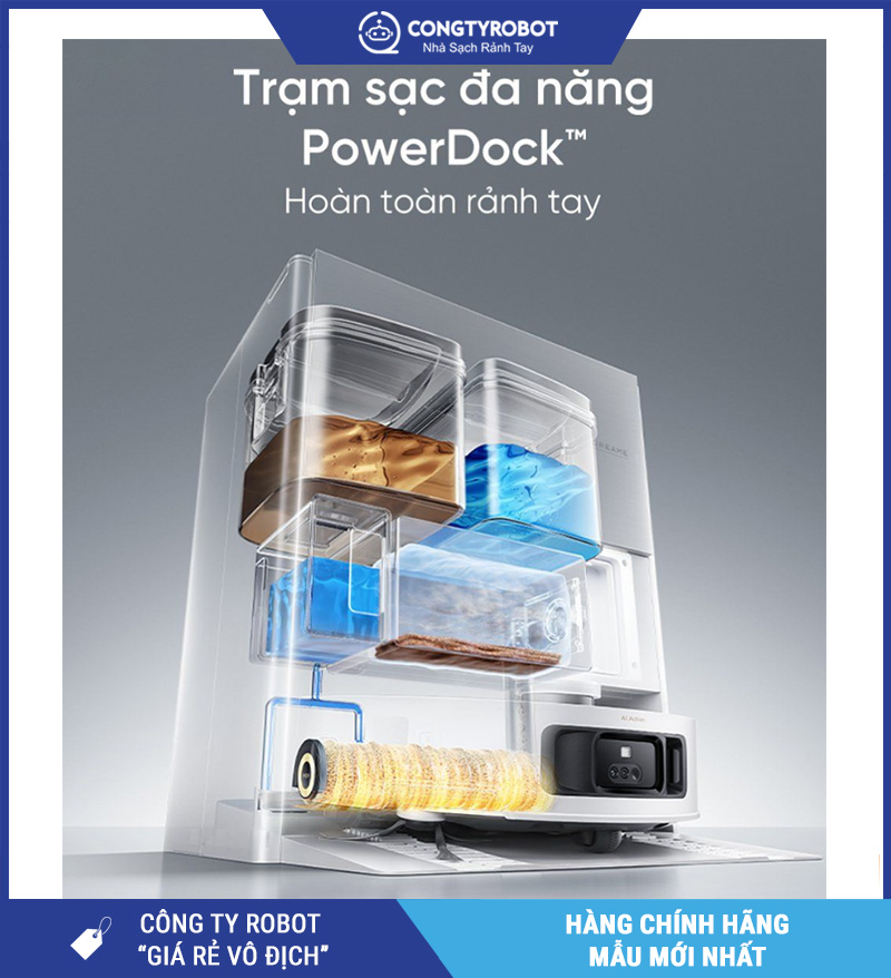 Nếu robot là “người dọn nhà”, thì PowerDock™ chính là “trợ lý hậu cần” giúp bạn nhàn hơn mỗi ngày. Thay vì phải tự giặt giẻ, đổ nước, vệ sinh thủ công liên tục, trạm sạc all-in-one tự động hóa phần lớn quy trình chăm sóc robot sau mỗi lần chạy.