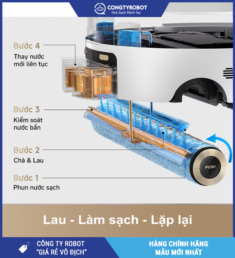 | Công nghệ lau | Roller Mop (con lăn lau ngang) |