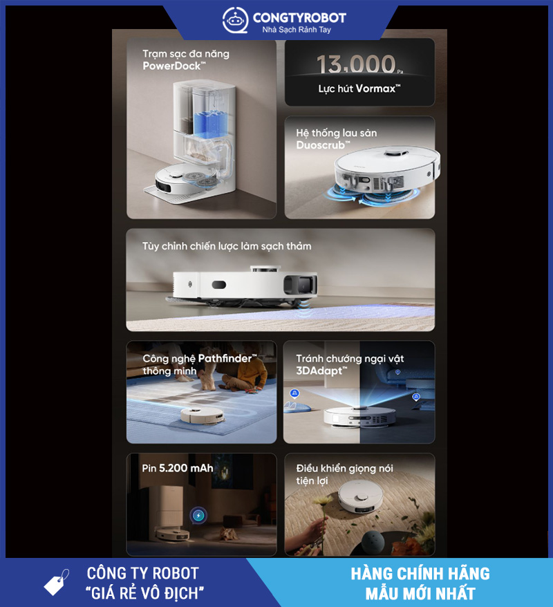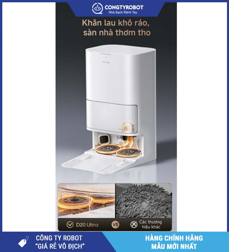Dreame D20 Ultra không đơn thuần là một robot hút bụi – lau nhà, mà là một trợ lý dọn dẹp toàn diện cho cuộc sống hiện đại. Sở hữu lực hút Vormax™ 13.000Pa cực mạnh, công nghệ lau xoay DuoScrub™, cùng trạm sạc thông minh PowerDock™ tích hợp tự giặt, sấy, đổ rác và cấp nước, sản phẩm này giúp bạn loại bỏ hoàn toàn công việc vệ sinh thủ công hằng ngày.