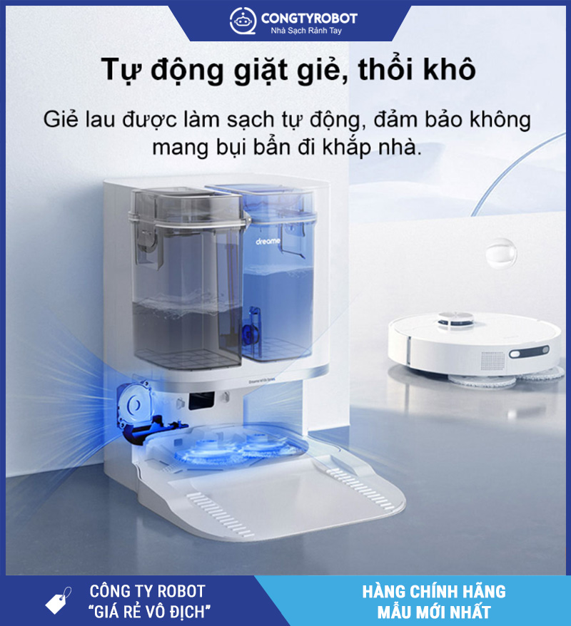 | Tính năng nổi bật | Giặt & sấy giẻ tự động, lau xoay 360°, tự nâng giẻ khi gặp thảm |
