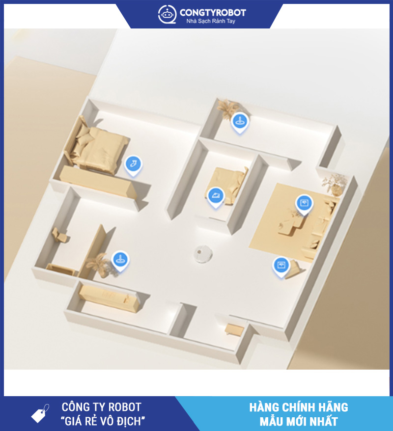 Bạn có thể tạo và lưu trữ tối đa 3 bản đồ tầng khác nhau, dễ dàng phân vùng, đặt tên phòng, thiết lập vùng cấm lau – cấm hút, hoặc lên lịch dọn từng khu vực. Tất cả thực hiện chỉ trong vài cú chạm trên ứng dụng.