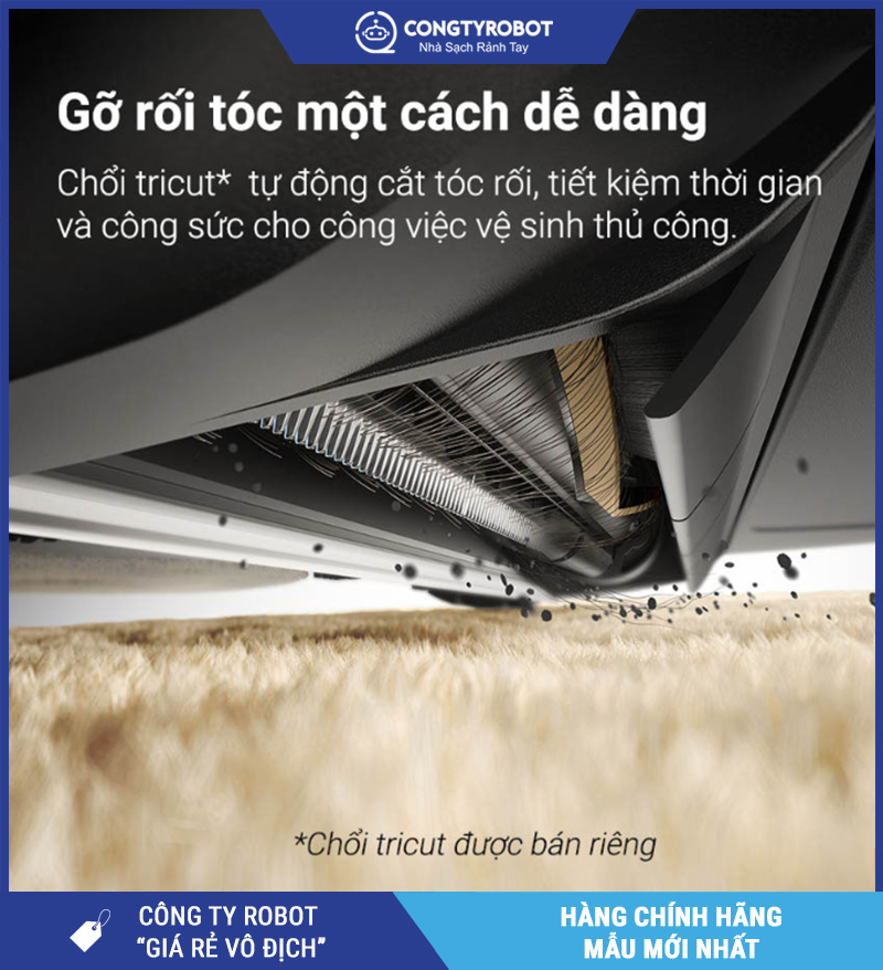 Thiết kế Tricut 3 rãnh bằng cao su nguyên khối giúp hạn chế tối đa tình trạng tóc rối – quấn vào trục, từ đó duy trì lực hút ổn định và giảm thời gian vệ sinh thủ công cho người dùng.