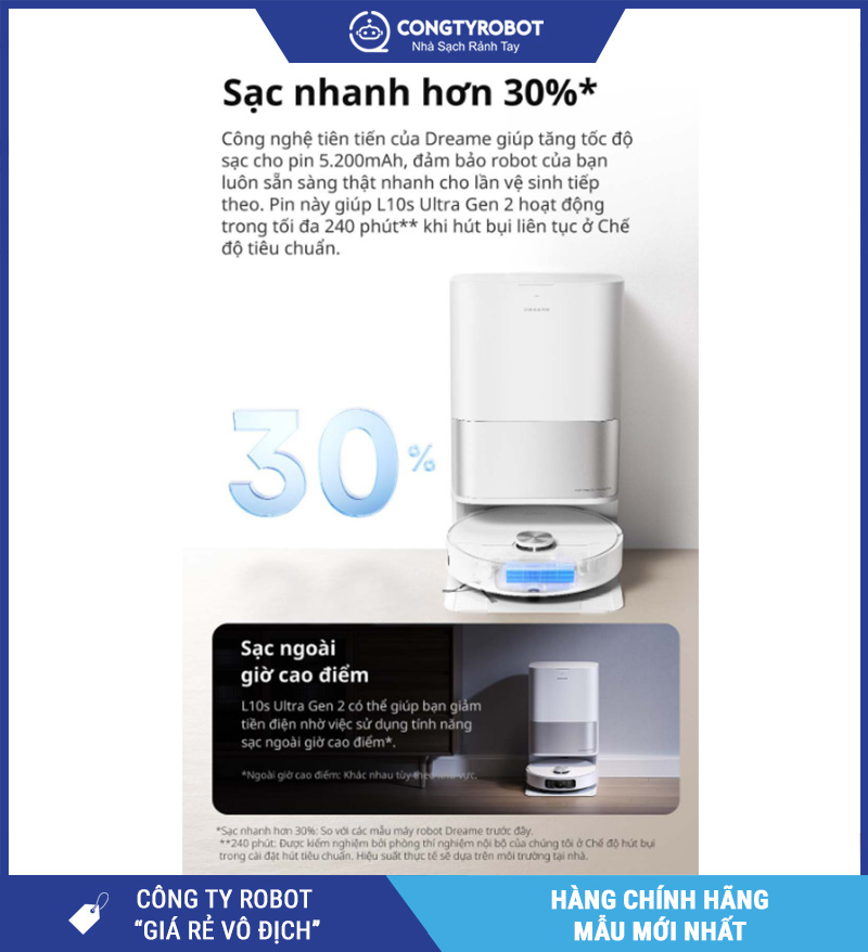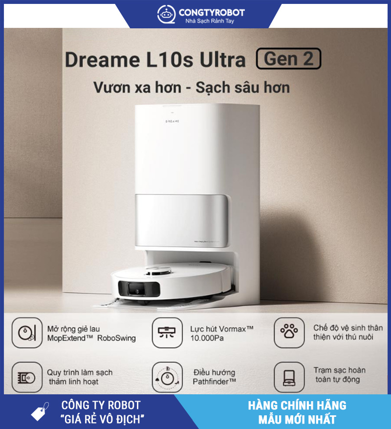 Với lực hút Vormax™ 10.000Pa, công nghệ lau DuoScrub™, giặt & sấy giẻ tự động, hệ thống tránh vật cản AI 3D, cùng trạm sạc thông minh toàn diện – Dreame L10s Ultra Gen 2 xứng đáng là “trợ lý làm sạch” hoàn hảo cho mọi gia đình hiện đại.