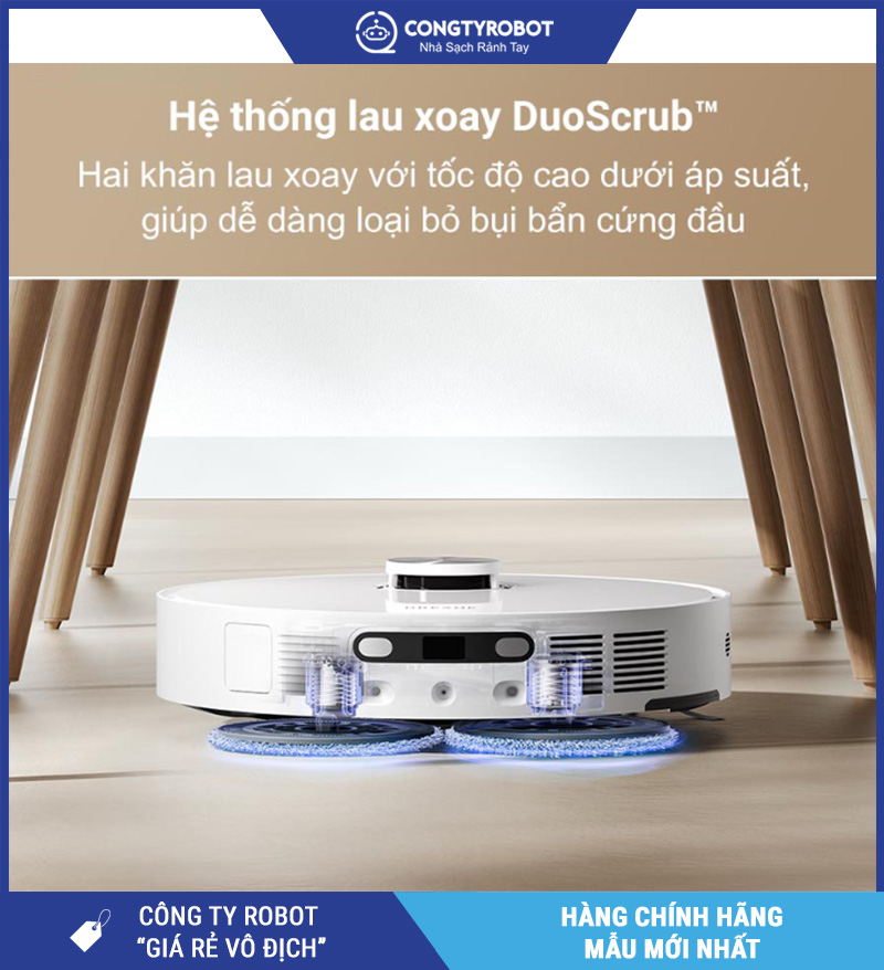 Công nghệ DuoScrub™ sử dụng 2 giẻ lau xoay ngược chiều với tốc độ cao, tạo áp lực mạnh giúp xử lý vết bẩn lâu ngày như dầu mỡ, cà phê khô, vết giày… Ngoài ra, tính năng giặt & sấy giẻ tự động giúp đảm bảo khăn lau luôn sạch sẽ sau mỗi lần hoạt động.