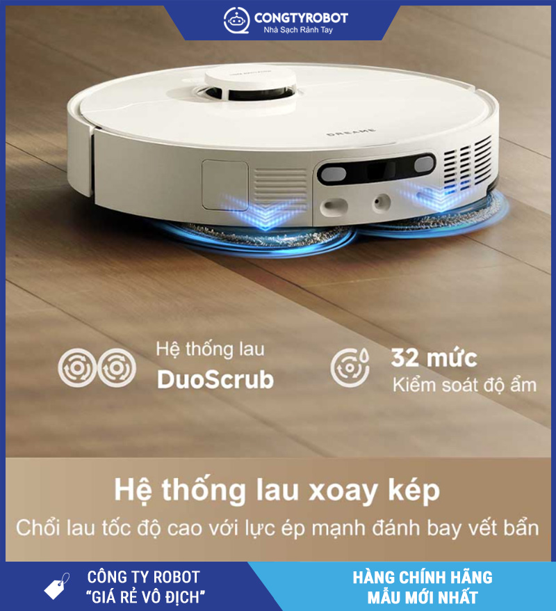 Khác với các robot lau nhà thông thường, Dreame L10s Ultra Gen 3 sở hữu hệ thống lau xoáy kép DuoScrub™, có khả năng tùy chỉnh độ ẩm lau theo 32 mức khác nhau, đảm bảo lau sạch mà vẫn bảo vệ chất liệu sàn.