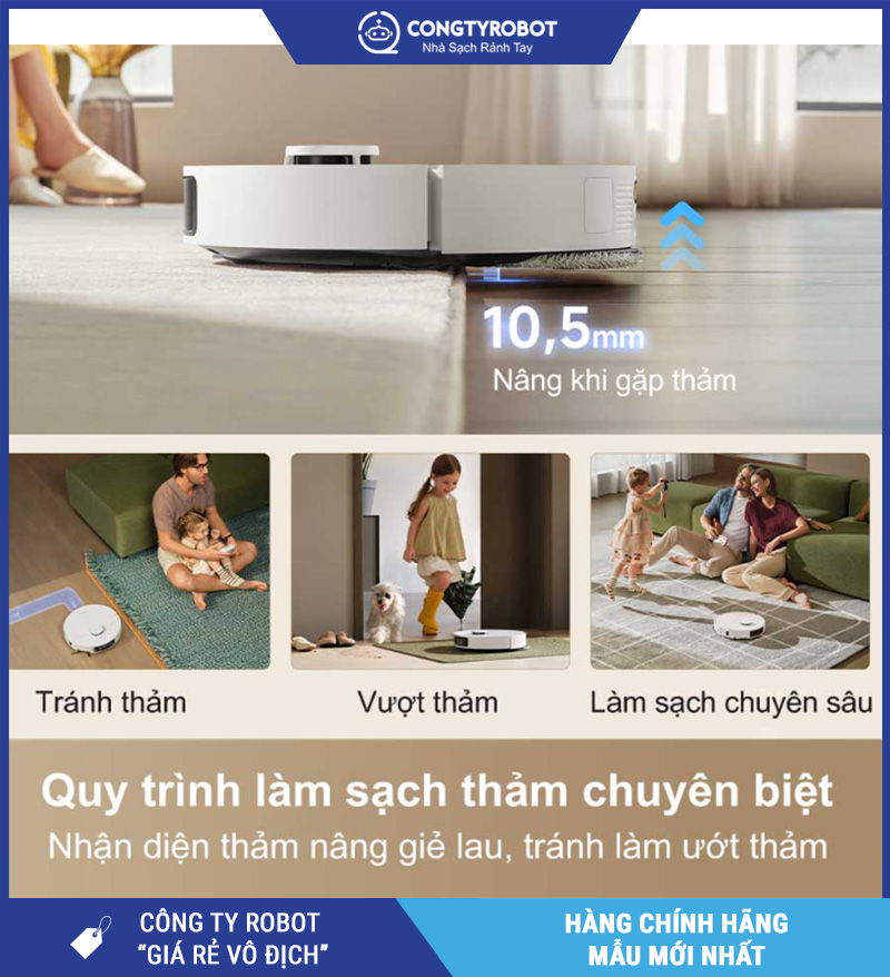 Tính năng này cực kỳ phù hợp với phòng ngủ, phòng khách trải thảm, giúp bạn yên tâm robot hoạt động mà không phải can thiệp thủ công.