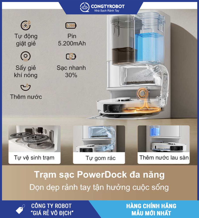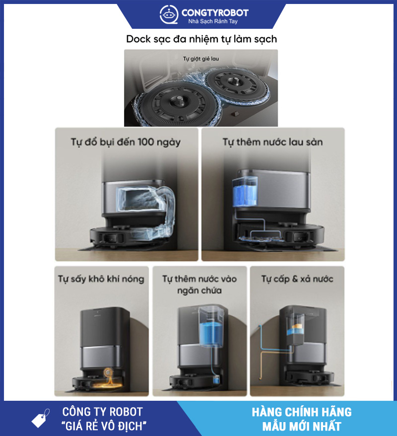 Tự giặt – sấy – hút rác – tránh vật cản – định vị thông minh