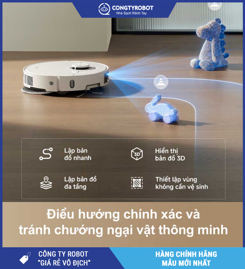 Xây dựng bản đồ không gian chính xác, phân chia khu vực dọn dẹp hợp lý