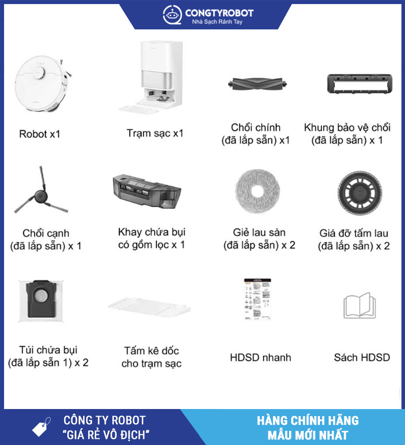 | Thể tích túi chứa bụi (trạm sạc) | 3.2L – Dùng tới 60 ngày không cần thay |