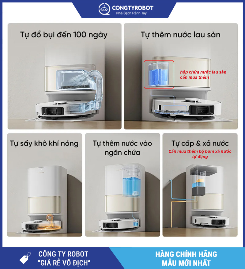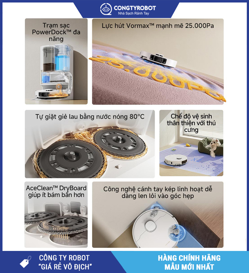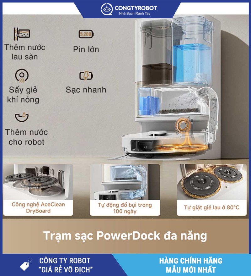 - Trạm PowerDock™ tự hút rác – giặt giẻ – sấy khô DryBoard