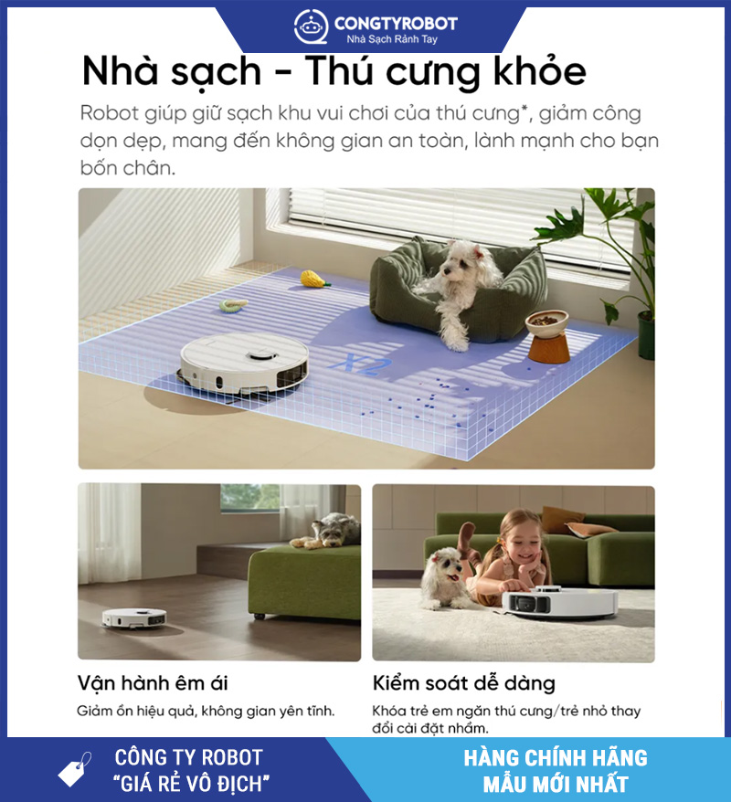 Đây là lựa chọn lý tưởng cho các gia đình có thú cưng trong nhà, đảm bảo vệ sinh – không mùi hôi – an toàn mà không cần dọn dẹp thủ công mỗi ngày.