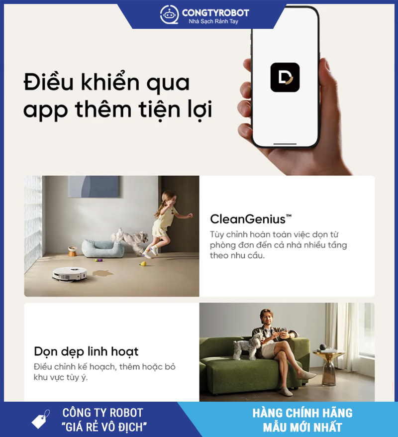 Với CleanGenius™, bạn gần như không cần can thiệp thủ công, robot sẽ hoạt động đúng ý bạn theo thời gian sử dụng – càng dùng càng thông minh.