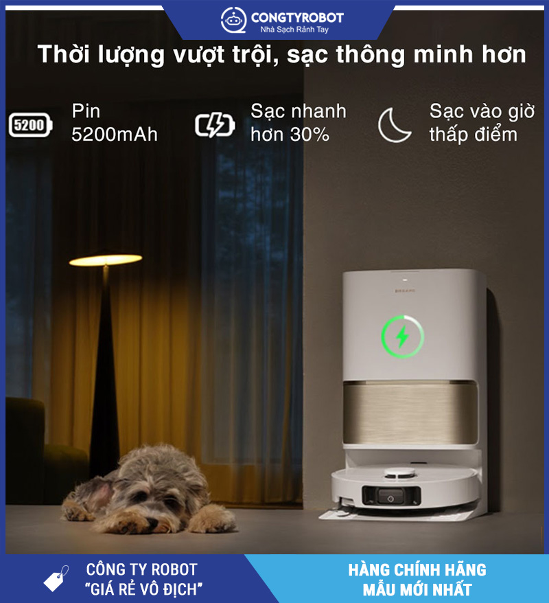 Pin dung lượng 5.200mAh – Làm sạch lâu hơn, thông minh hơn
