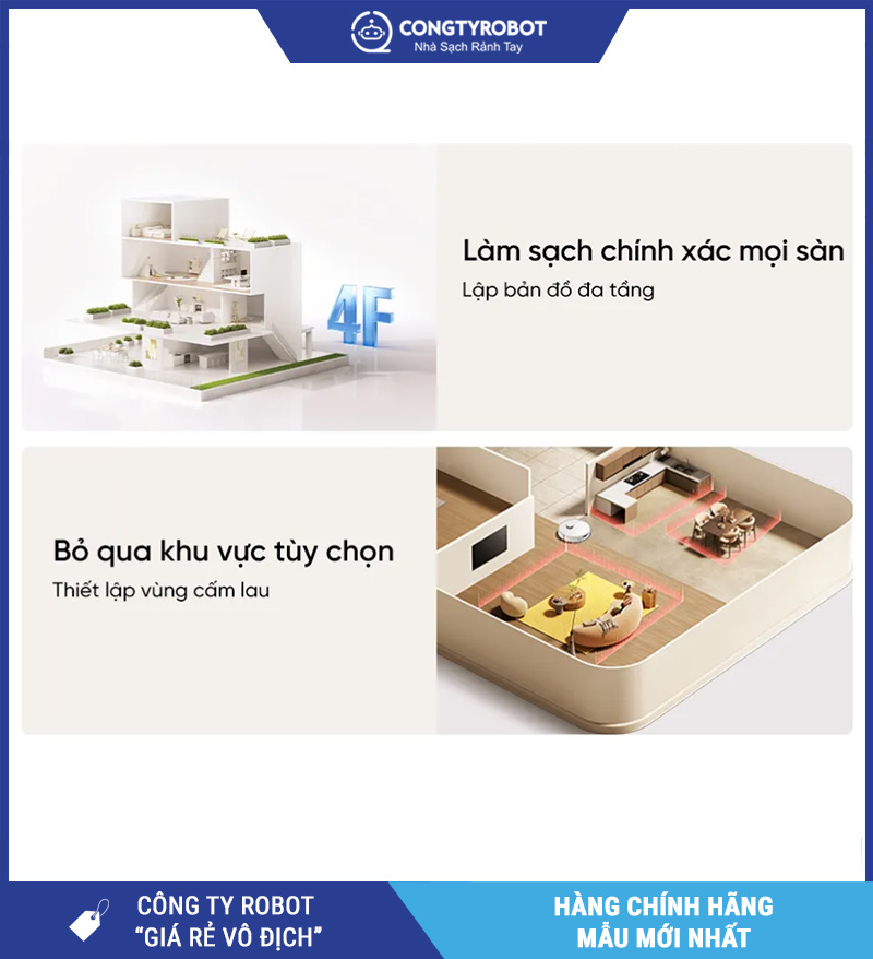 Tuỳ chỉnh lực hút – tốc độ lau – chế độ làm sạch riêng cho từng phòng