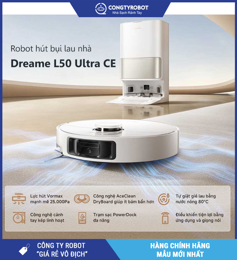 Dreame L50 Ultra CE là lựa chọn lý tưởng cho các hộ gia đình tại Việt Nam cần robot đa năng – sạch sâu – dễ điều khiển – vận hành tự động hoàn toàn.
