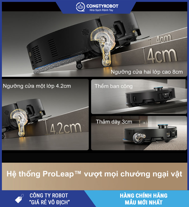 Một điểm nâng cấp đáng giá nữa chính là khả năng vượt vật cản đến 8cm – cao hơn hẳn mặt bằng robot hút bụi thông thường (chỉ 2–3cm). Nhờ đó, robot dễ dàng: