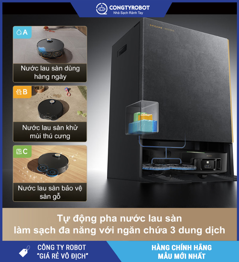 Qua ứng dụng Dreamehome, người dùng có thể thiết lập robot tự động chọn loại dung dịch phù hợp theo từng phòng, từng tình huống. Đây là giải pháp mà chưa một robot hút bụi nào trên thị trường hiện tại có được.