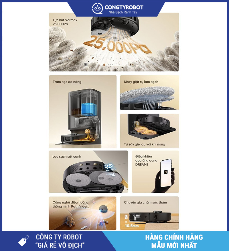 Với các công nghệ nổi bật như Vormax 25.000Pa, MopExtend RoboSwing, DuoScrub, PowerDock, Pathfinder, 3DAdapt và Matter, Dreame D30 Ultra không chỉ là thiết bị dọn dẹp mà còn là một trợ lý vệ sinh thông minh cho không gian sống hiện đại.