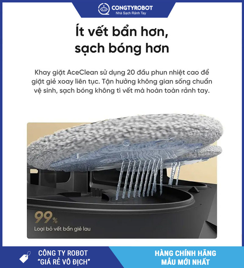 Trạm sạc đi kèm hỗ trợ khay giặt tự làm sạch AceClean 3.5 và sấy khô giẻ lau bằng khí nóng 50°C, nhờ đó robot có thể duy trì khả năng lau dọn sạch sẽ và hạn chế mùi ẩm sau khi hoạt động. Với người dùng bận rộn, đây là yếu tố giúp trải nghiệm sử dụng tiện lợi hơn rất nhiều.