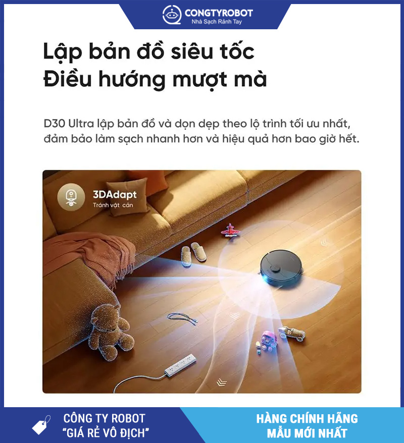 Kết hợp cùng công nghệ tránh vật cản 3DAdapt, robot có thể nhận diện tốt hơn các vật thể quen thuộc trong gia đình như dây điện, dép, đồ chơi nhỏ hoặc chân bàn ghế. Điều này giúp robot vận hành linh hoạt hơn, đặc biệt trong không gian sống có nhiều nội thất hoặc vật dụng sinh hoạt.