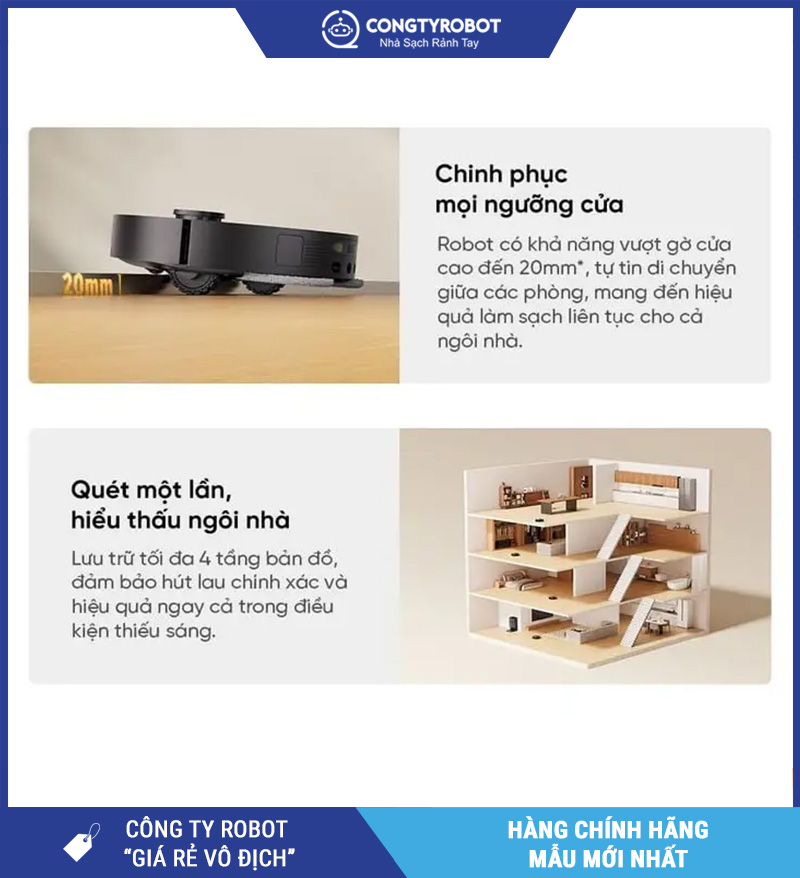 Không chỉ vậy, robot còn có khả năng nhận diện thảm thông minh, cho phép tự động điều chỉnh chế độ vận hành khi đi từ sàn cứng sang khu vực có thảm. Tính năng này giúp robot tối ưu hiệu quả làm sạch mà vẫn phù hợp với từng loại bề mặt trong nhà.