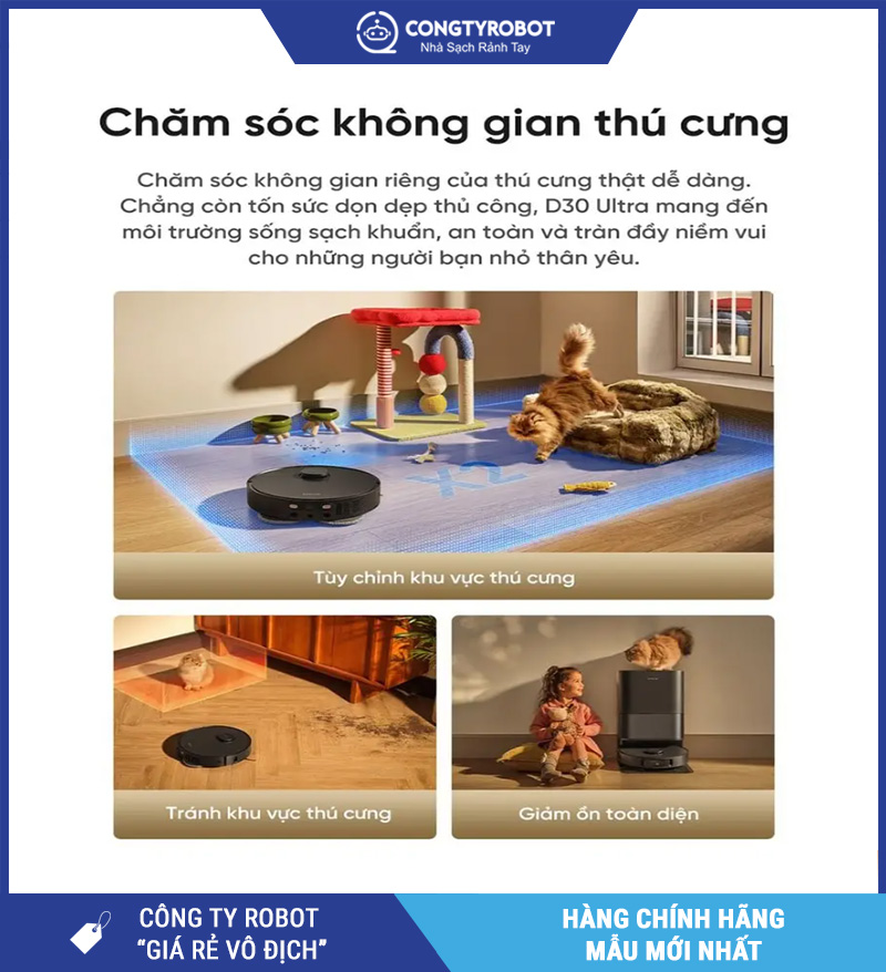 Một trong những nhóm khách hàng rất phù hợp với Robot hút bụi lau nhà Dreame D30 Ultra – Bản Quốc Tế là các gia đình nuôi thú cưng. Với lực hút mạnh, cơ chế làm sạch thông minh và khả năng xử lý bụi bẩn hiệu quả, robot giúp giảm đáng kể áp lực dọn dẹp hằng ngày trong môi trường có chó mèo.