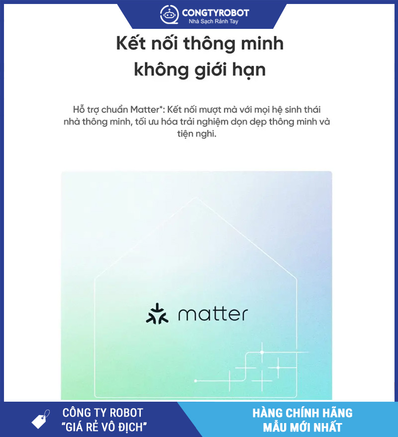 Một điểm cộng đáng giá trên Dreame D30 Ultra – Bản Quốc Tế là khả năng hỗ trợ kết nối chuẩn Matter. Đây là chuẩn kết nối đang ngày càng được quan tâm trong hệ sinh thái nhà thông minh, giúp các thiết bị tương thích và hoạt động đồng bộ thuận tiện hơn.