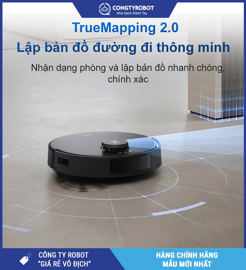 Công nghệ cảm biến TrueMapping 2.0 giúp robot nhận diện và tránh các vật cản nhỏ như dây điện, đồ chơi, đảm bảo quá trình làm sạch diễn ra liên tục và hiệu quả.