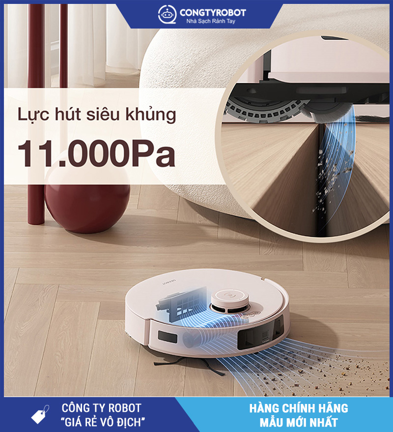 Ecovacs T30 Pro Omni sở hữu lực hút lên đến 11.000Pa, giúp loại bỏ hiệu quả bụi bẩn, tóc và các hạt nhỏ trên sàn nhà. Đây là một trong những mức lực hút cao nhất hiện nay trên thị trường robot hút bụi.