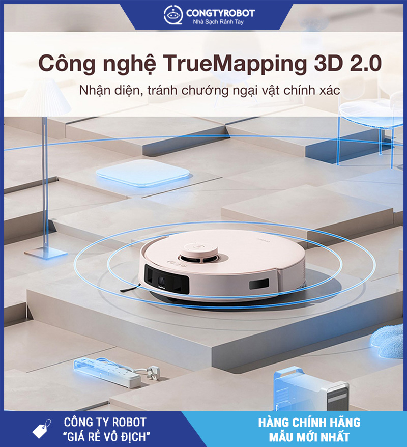 Công nghệ cảm biến 3D giúp robot nhận diện và tránh các vật cản nhỏ như dây điện, đồ chơi, đảm bảo quá trình làm sạch diễn ra liên tục và hiệu quả.