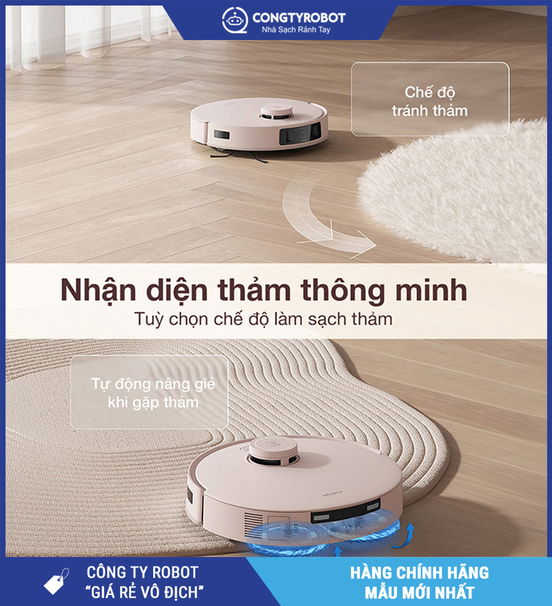 Ecovacs T30 Pro Omni được trang bị tính năng tự động nâng giẻ lau lên đến 9mm khi phát hiện thảm. Đây là tính năng cực kỳ hữu ích đối với các gia đình sử dụng thảm lông, thảm nỉ, thảm cao cấp.