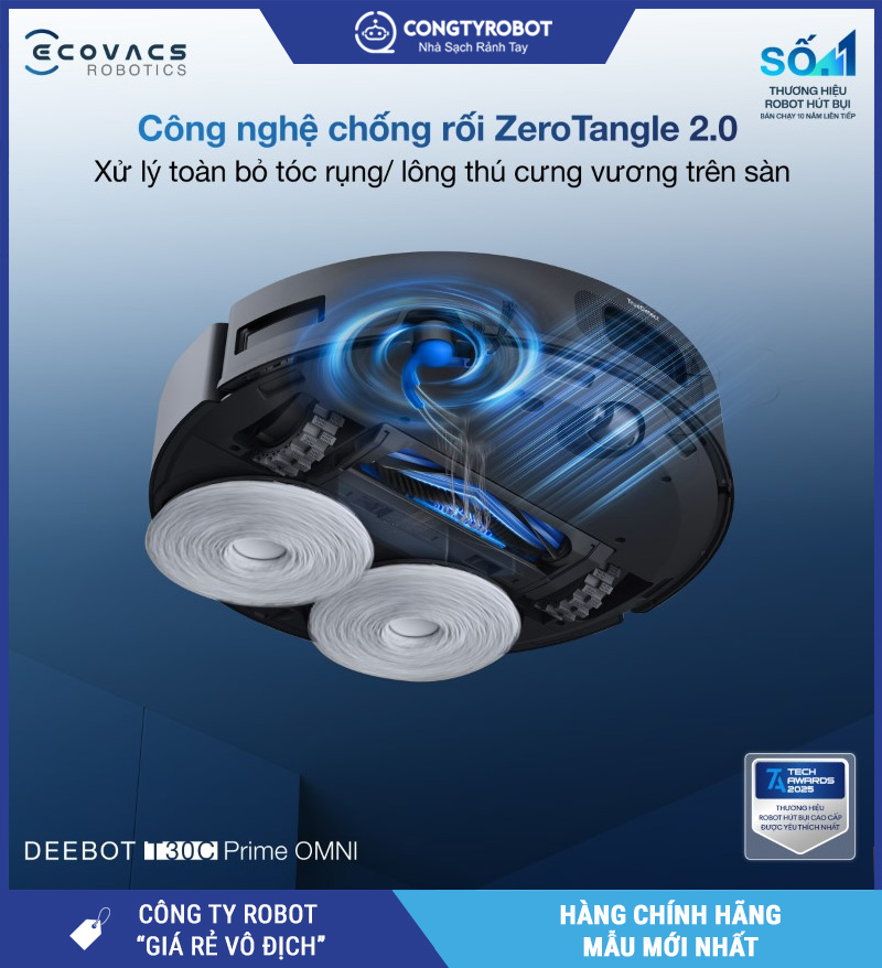 Trang sản phẩm cho biết Ecovacs Deebot T30C Prime Omni được trang bị ZeroTangle 2.0, hướng đến trải nghiệm làm sạch liền mạch hơn cho những gia đình có người tóc dài hoặc nuôi thú cưng. Vấn đề tóc quấn vào chổi là một trong những nguyên nhân phổ biến khiến robot giảm hiệu suất hút, tăng tiếng ồn và buộc người dùng phải tháo chổi ra để vệ sinh thường xuyên. Việc Ecovacs tập trung nâng cấp mạnh ở hạng mục này cho thấy sản phẩm được tối ưu khá rõ cho nhu cầu sử dụng thực tế.