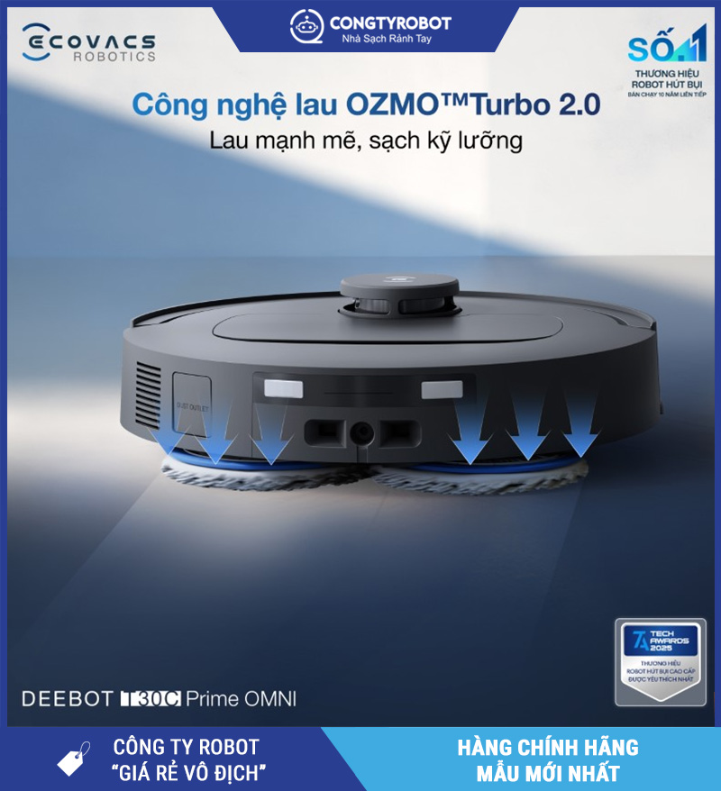 Ecovacs Deebot T30C Prime Omni là mẫu robot hút bụi lau nhà nổi bật nhờ cách kết hợp đồng đều giữa lực hút 25.000Pa, lau xoay OZMO Turbo 2.0, ZeroTangle 2.0, chổi cạnh ARClean, chổi chính Triple-V, tự nâng giẻ 9mm, trạm OMNI tự động đa năng, TrueMapping 2.0, TrueDetect 3D và khả năng vượt vật cản 20mm. Toàn bộ những công nghệ này cùng hướng đến một mục tiêu chung: giúp việc dọn dẹp trong gia đình trở nên nhàn hơn, sạch hơn và ít phải can thiệp thủ công hơn.