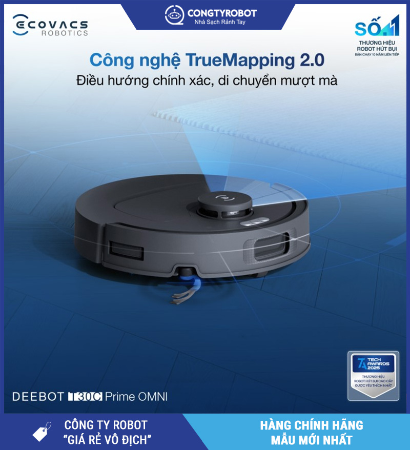 Theo trang sản phẩm, Ecovacs Deebot T30C Prime Omni sử dụng TrueMapping 2.0, cho phép robot quét và xây dựng bản đồ rất nhanh, khoảng 8 phút cho diện tích 96m². Sau khi hoàn tất, robot sẽ tự động tối ưu lộ trình để di chuyển khoa học hơn, hạn chế bỏ sót khu vực và giảm thời gian dọn dẹp. Robot cũng hỗ trợ lưu nhiều bản đồ, phù hợp với nhà nhiều tầng hoặc không gian chia phòng phức tạp.