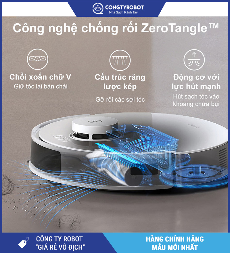 Nếu bạn từng phải mất thời gian gỡ tóc rối khỏi chổi robot, thì Ecovacs T30e Pro Omni chính là "cứu tinh". Nhờ tích hợp công nghệ ZeroTangle™, sản phẩm giúp chống rối tóc, lông thú hiệu quả, giảm thiểu tối đa tình trạng tắc nghẽn chổi hút.