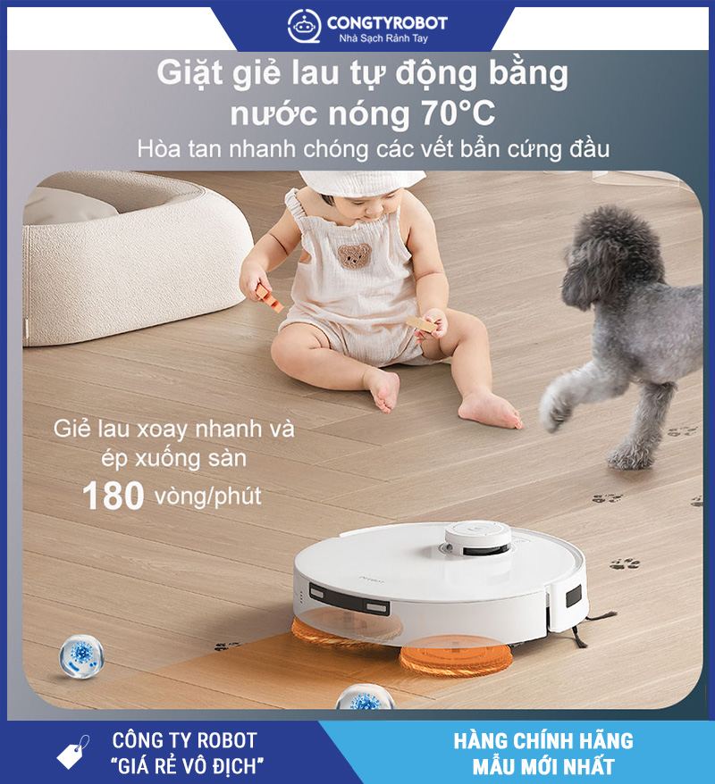 Một nâng cấp đắt giá không thể không nhắc đến là khả năng giặt giẻ lau bằng nước nóng 70°C, giúp đánh bay bụi bẩn cứng đầu và diệt khuẩn hiệu quả.