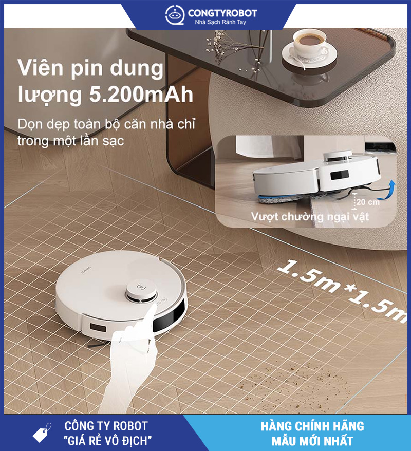 Nhờ khả năng vận hành bền bỉ, người dùng không cần lo ngại robot dọn chưa xong đã ngắt giữa chừng, đặc biệt hữu ích với những căn hộ rộng hoặc nhà có nhiều phòng.