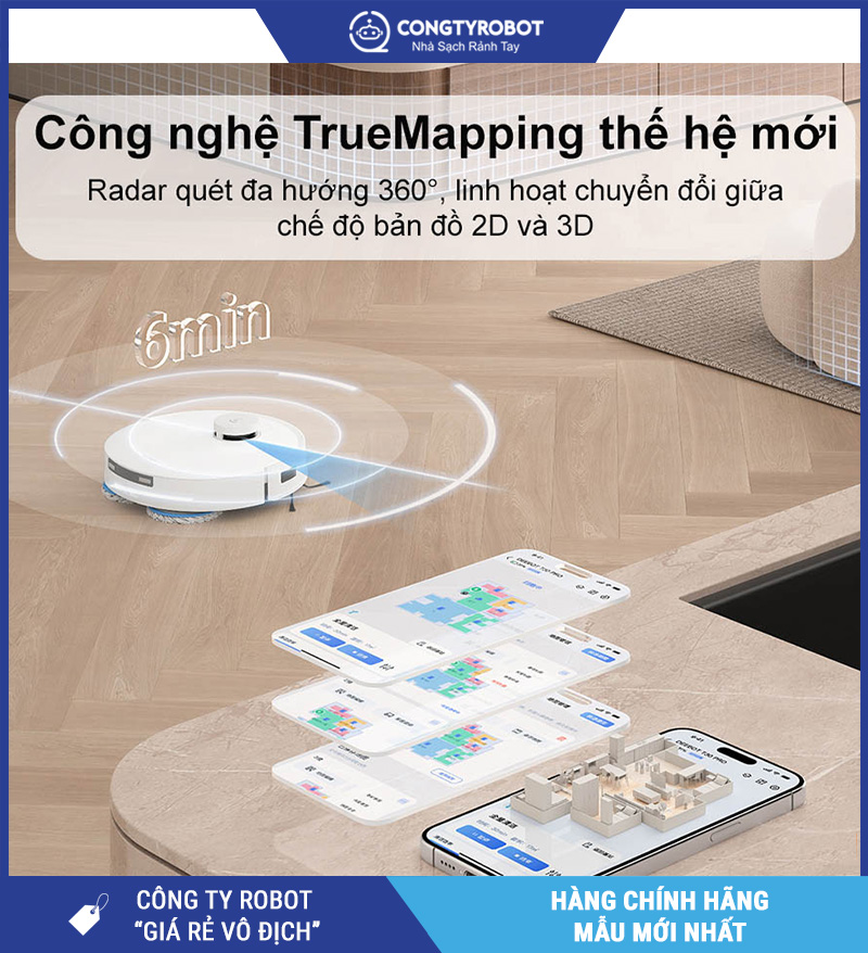 Công nghệ này giúp robot di chuyển linh hoạt, tránh bỏ sót, đồng thời tăng khả năng lập kế hoạch làm sạch thông minh, phù hợp từng không gian cụ thể.