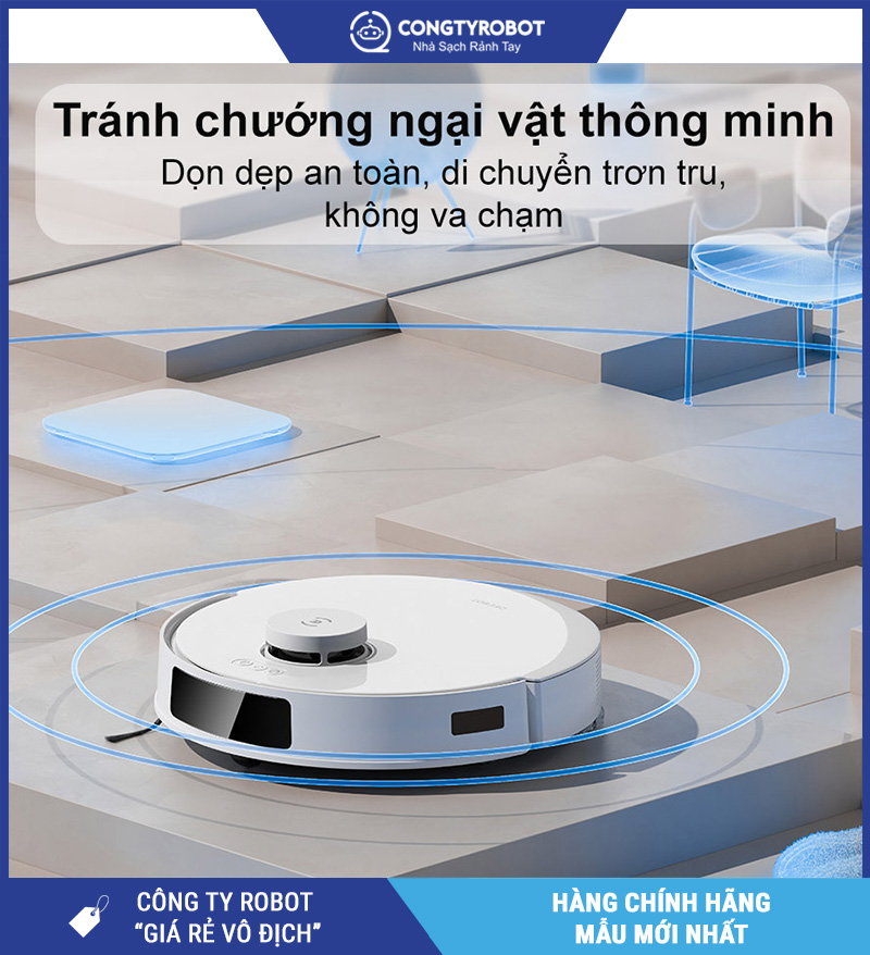 Tự động điều chỉnh đường đi để tránh va chạm, bảo vệ đồ nội thất và chính robot