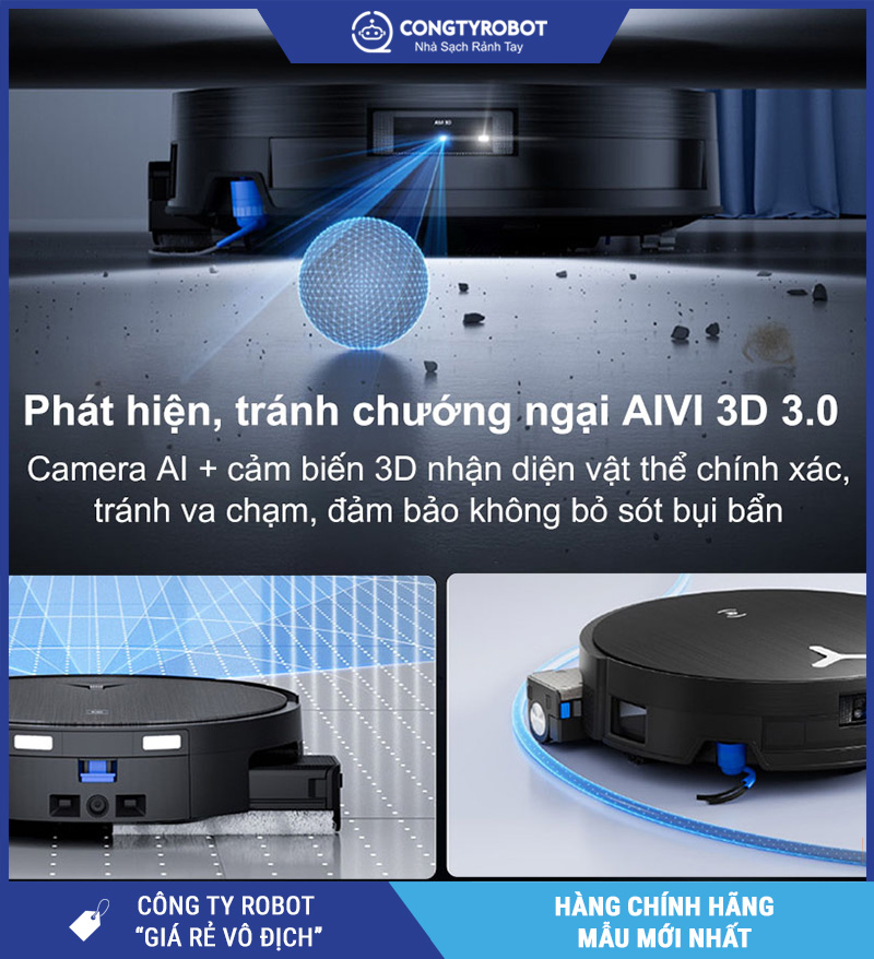 AIVI 3.0 giúp robot “nhìn – phân tích – phản ứng thông minh”, mang lại trải nghiệm hoàn toàn khác biệt với các dòng robot cơ bản chỉ dùng cảm biến va chạm.