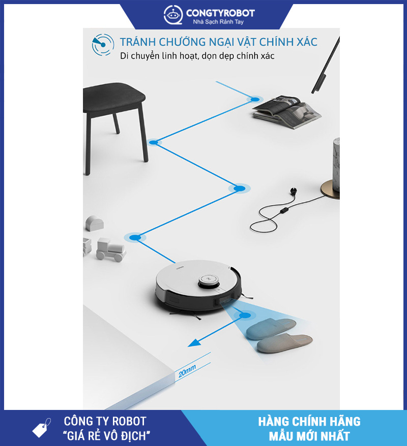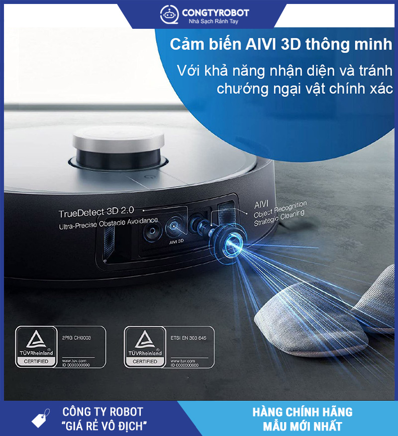 Cảm biến AIVI 3D giúp robot phát hiện và phân biệt chính xác các vật thể nhỏ như dây điện, đồ chơi trẻ em hay chân bàn ghế để né tránh mượt mà. Kết hợp bản đồ laser TrueMapping 2.0, robot học thói quen người dùng và tối ưu tuyến đường dọn dẹp qua thời gian.