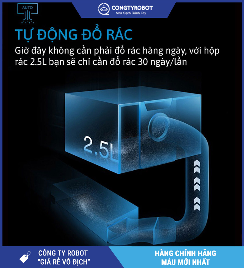 | Tự động đổ rác | Có – hút vào túi bụi 3L |