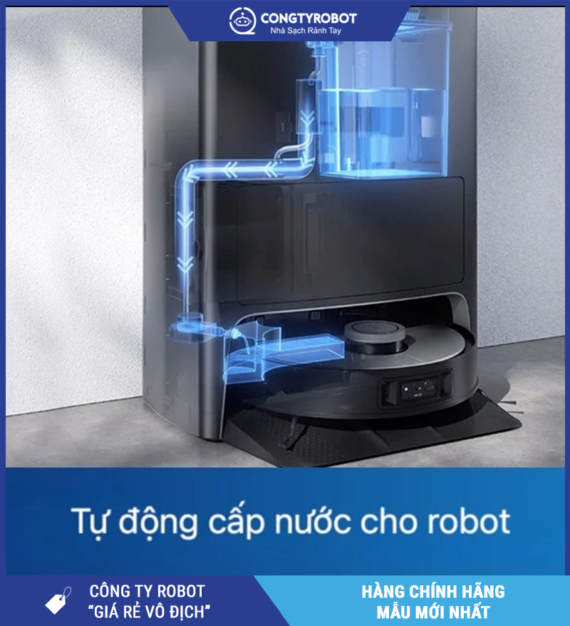 Tự động đổ đầy nước sạch, giúp robot tiếp tục lau nhà mà không cần can thiệp