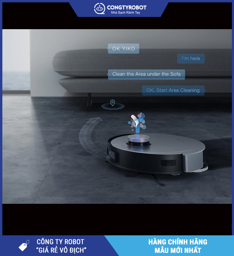 Chỉ cần nói "OK YIKO, bắt đầu dọn phòng khách" là robot sẽ lập tức thực hiện nhiệm vụ. YIKO hỗ trợ tiếng Việt, có khả năng nhận diện giọng nói theo phòng và vị trí, giúp người dùng cao tuổi hoặc trẻ nhỏ dễ dàng sử dụng.