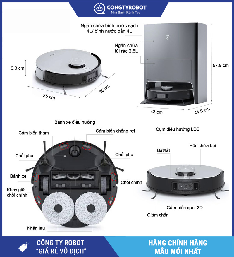 | Kích thước robot | 362 x 362 x 103 mm |