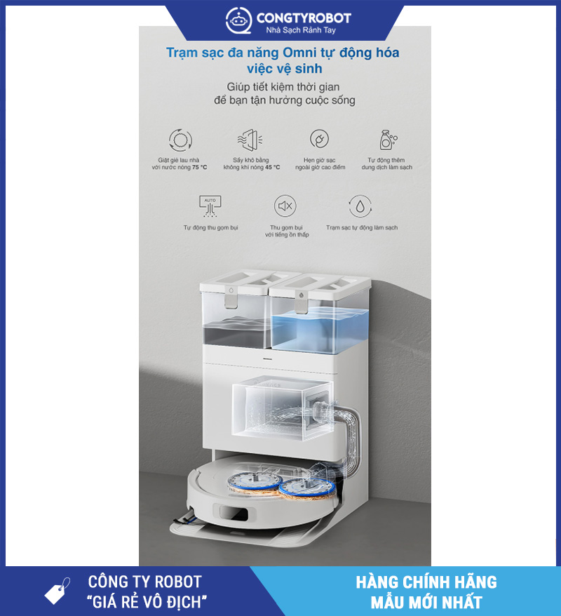 | Trạm sạc OMNI | Tự động giặt giẻ, sấy khô, đổ rác, cấp nước |