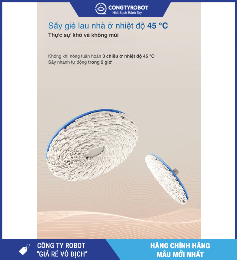 | Sấy khô giẻ lau | Có – sấy khí nóng 45°C |
