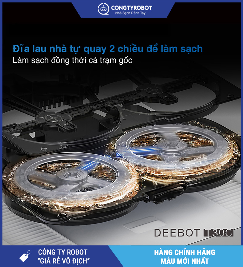 Lực hút 20.000Pa giúp T30C làm sạch sâu bụi mịn, tóc, vụn thức ăn. Cơ chế lau xoay đôi với lực ép 6N giúp loại bỏ vết bẩn cứng đầu trên gạch, sàn gỗ, thảm mỏng.