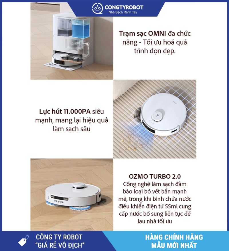 | Tự động đổ rác | Có – hút bụi vào túi 3L |